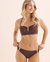 Embrace elegance with a bold twist in this brown bandeau bikini top. Its gold V-shaped jewel with a cut-out draws all eyes. Comfort meets style with removable pads, an adjustable and detachable strap and a back closure with 5 hook positions.